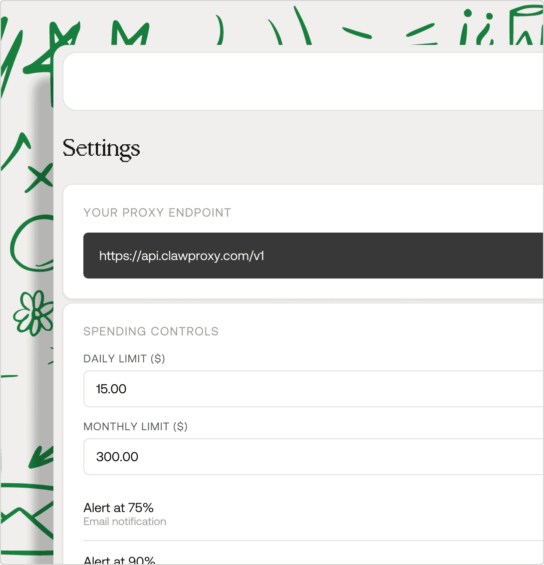 Create a free account. You'll get a ClawProxy API key instantly — no credit card needed.